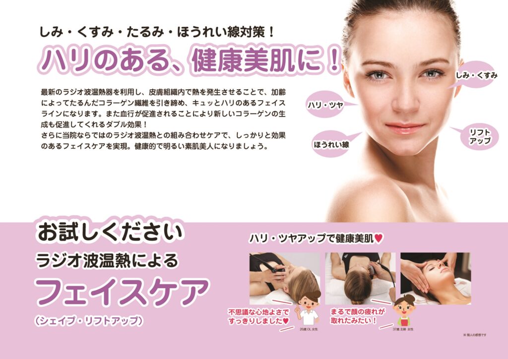 南えど整骨院のフェイシャルケアではラジオ波温熱による施術を行います。